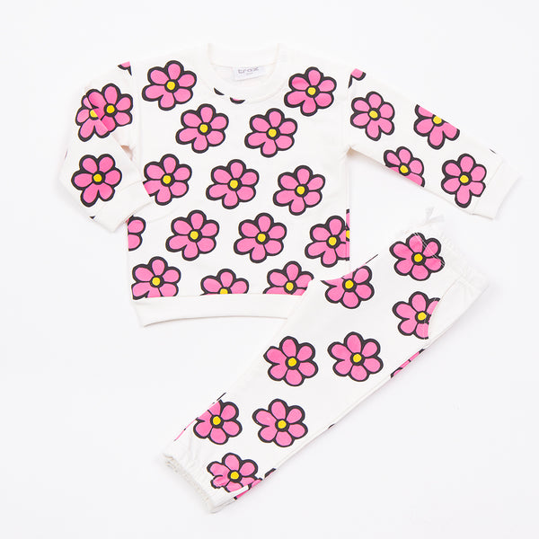 Βρεφική φόρμα σετ TRAX για κορίτσια από 3 έως 18 μηνών. Μακρυμάνικη φούτερ με όμορφο ανεξίτηλο τύπωμα και εσωτερικό χνούδι. Φούτερ παντελόνι φόρμας με μαλακό λάστιχο στη μέση και στον αστράγαλο.
