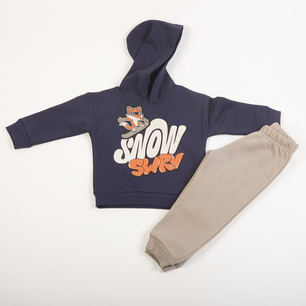 Παιδική φόρμα σετ TRAX για αγόρια από 2 έως 6 ετών. Μακρυμάνικη φούτερ μπλούζα με κουκούλα και όμορφο ανεξίτηλο τύπωμα και εσωτερικό χνούδι. Φούτερ παντελόνι φόρμας με μαλακό λάστιχο στη μέση και στον αστράγαλο.