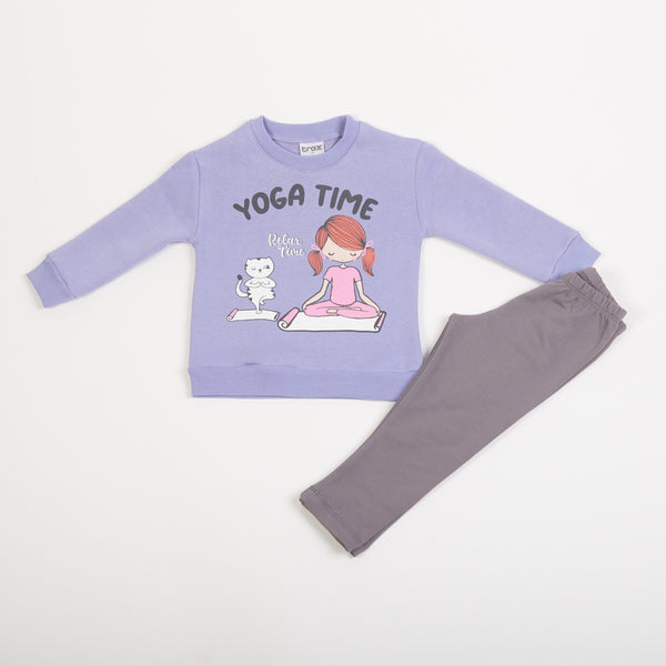Παιδικό χειμερινό σετ TRAX για κορίτσια από 2 έως 6 ετών. Μακρυμάνικη μπλούζα φούτερ με όμορφο τύπωμα και μονόχρωμο μάυρο κολάν με εσωτερικό χνούδι και μαλακό λάστιχο στη μέση.