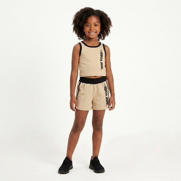 ΚΑΛΟΚΑΙΡΙΝΟ ΣΕΤ TRAX ΓΙΑ ΚΟΡΙΤΣΙΑ 7-16 ΕΤΩΝ  Αμάνικη μπλούζα με τύπωμα και μακό βερμούδα με μαλακό λάστιχο στην μέση.