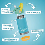 The innovative children's insulated bottle from kyds: Keeps drinks hot or cold for a long time, ideal for school, trips and adventures – robust, leak-proof and perfect for little hands!