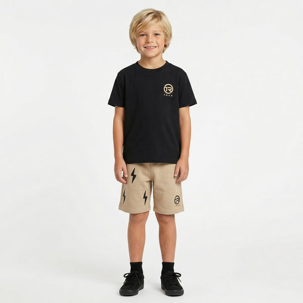 ΚΑΛΟΚΑΙΡΙΝΟ ΣΕΤ TRAX ΓΙΑ ΑΓΟΡΙΑ 7-16 ΕΤΩΝ  Κοντομάνικη μπλούζα με τύπωμα και μακό βερμούδα με μαλακό λάστιχο στην μέση.
