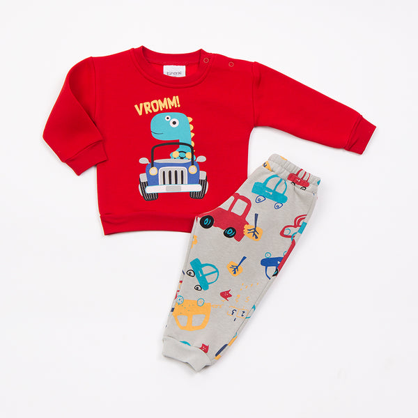 Βρεφική φόρμα σετ TRAX για αγόρια από 3 έως 18 μηνών. Μακρυμάνικη φούτερ με τύπωμα και φούτερ παντελόνι φόρμας με μαλακό λάστιχο στη μέση και στον αστράγαλο. (Σετ παντελόνι/μπλούζα 3-18μ)