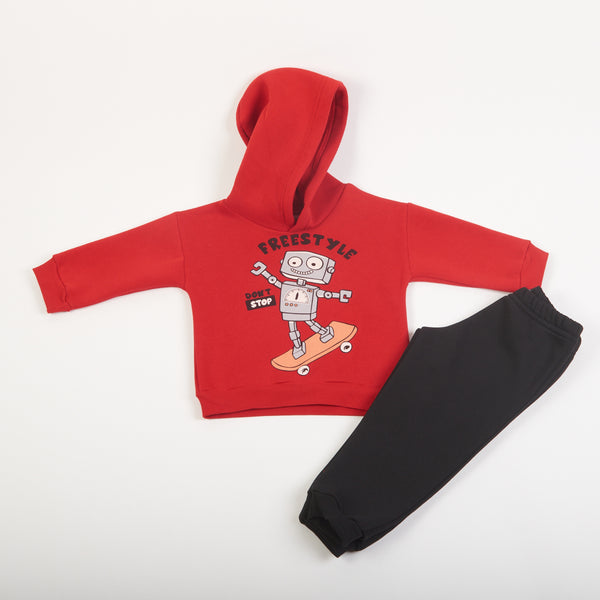 Παιδική φόρμα σετ TRAX για αγόρια από 2 έως 6 ετών. Μακρυμάνικη φούτερ μπλούζα με με κουκούλα και όμορφο ανεξίτηλο τύπωμα και εσωτερικό χνούδι. Φούτερ παντελόνι φόρμας με μαλακό λάστιχο...