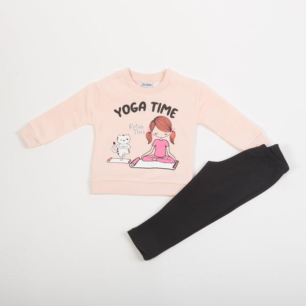 Παιδικό χειμερινό σετ TRAX για κορίτσια από 2 έως 6 ετών. Μακρυμάνικη μπλούζα φούτερ με όμορφο τύπωμα και μονόχρωμο μάυρο κολάν με εσωτερικό χνούδι και μαλακό λάστιχο στη μέση.