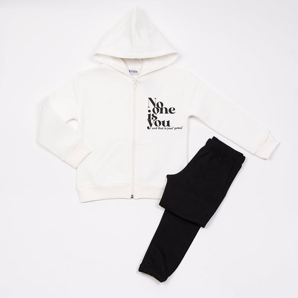 Χειμερινές φόρμες TRAX για αγόρια 7-16 ετών. Μακρυμάνικη ζακέτα με λάστιχο στο μανίκι. Μακρύ φούτερ παντελόνι φόρμας με μαλακό λάστιχο στη μέση και στον αστράγαλο. (Σετ μαύρο παντελόνι/ κρεμ ζακέτα)