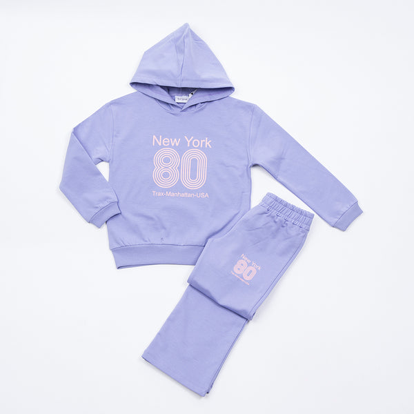 Χειμερινό σετ TRAX για κορίτσια από 7 έως 16 ετών. Μακρυμάνικη μπλούζα φούτερ με όμορφο τύπωμα και μονόχρωμο μάυρο κολάν με εσωτερικό χνούδι και μαλακό λάστιχο στη μέση.  (Σετ μύρτιλο...