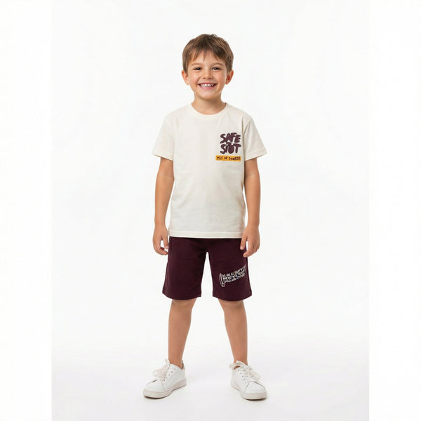 ΚΑΛΟΚΑΙΡΙΝΟ ΣΕΤ TRAX ΓΙΑ ΑΓΟΡΙΑ 7-16 ΕΤΩΝ  Κοντομάνικη μπλούζα με τύπωμα και μακό βερμούδα με μαλακό λάστιχο στην μέση.