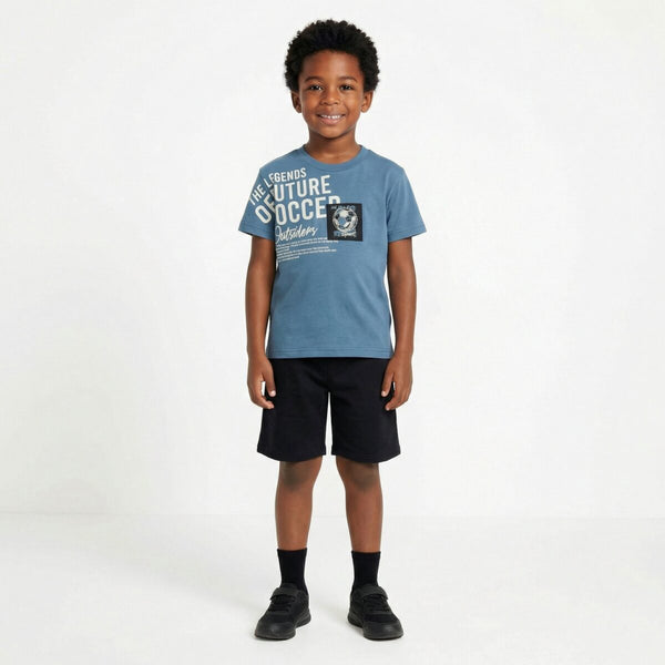 ΚΑΛΟΚΑΙΡΙΝΟ ΣΕΤ TRAX ΓΙΑ ΑΓΟΡΙΑ 7-16 ΕΤΩΝ  Κοντομάνικη μπλούζα με τύπωμα και μακό βερμούδα με μαλακό λάστιχο στην μέση.